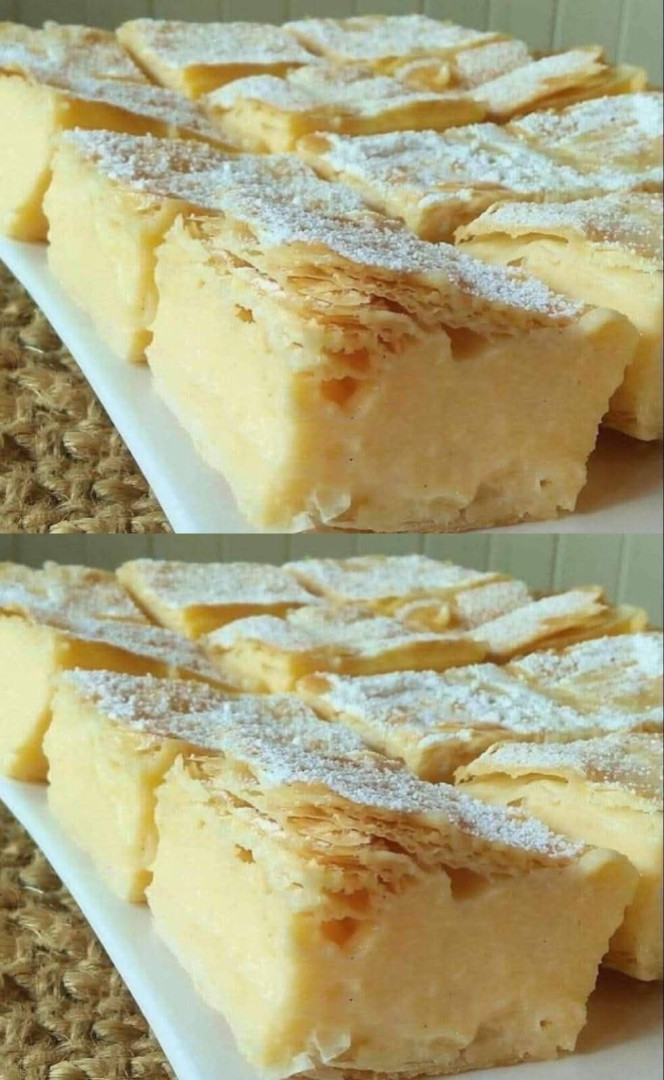 Descripción: Deléitese con estas cremosas y exquisitas Barras de Natillas de Vainilla, donde la suave crema pastelera se entrelaza con una delicada y hojaldrada masa. Cubiertas con una ligera capa de azúcar glas, estas barras ofrecen el equilibrio perfecto entre ricos sabores y textura, convirtiéndolas en un capricho irresistible para cualquier ocasión. Ya sea para una reunión familiar o para disfrutarlas personalmente, estas barras satisfarán a todos los golosos.