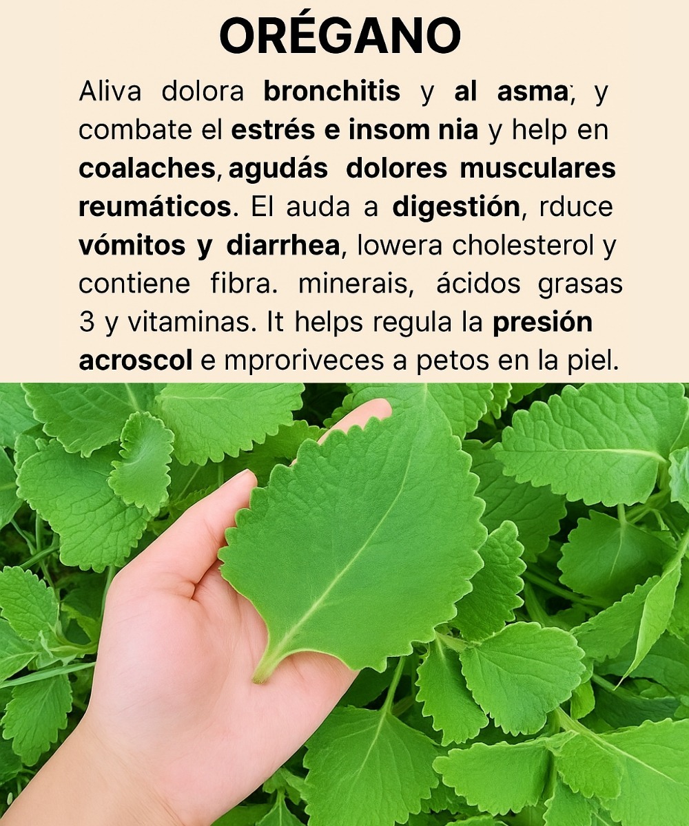 - Este pequeño pero poderoso vegetal contiene antioxidantes, aceites esenciales y compuestos antibacterianos como el carvacrol y el timol, que ayudan a combatir infecciones, eliminar toxinas y proteger el cuerpo contra virus y bacterias. Además, es un excelente antiinflamatorio, ideal para aliviar molestias musculares, digestivas y respiratorias.