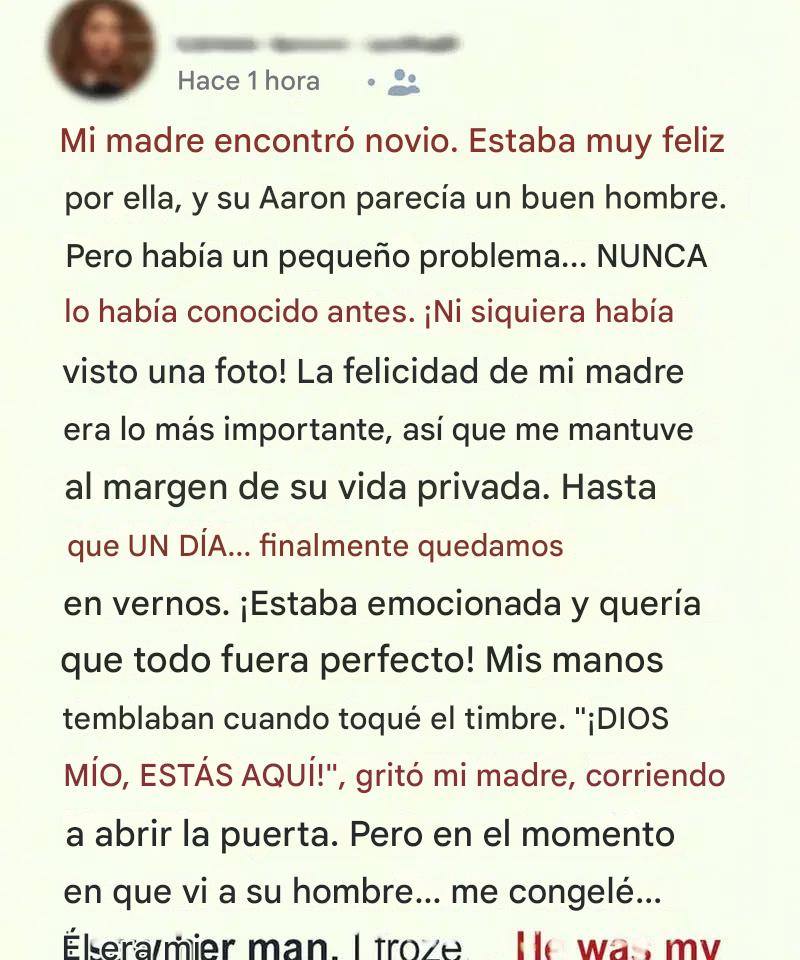 Estaba emocionada y quería que todo fuera perfecto. Me temblaban las manos al tocar el timbre. "¡Dios mío, estás aquí!", gritó mi madre, corriendo a abrir la puerta. Pero en cuanto vi a su hombre, me quedé paralizada... Era mi...