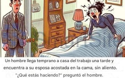 Un hombre llega temprano a casa del trabajo una tarde y encuentra a su esposa tumbada en la cama, jadeando…