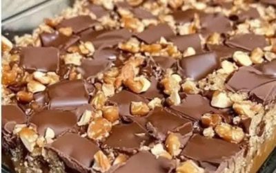 Barritas de caramelo y chocolate crujientes Ingredientes Para la base 200 g de galletas trituradas (graham, digestivas o María) 60…