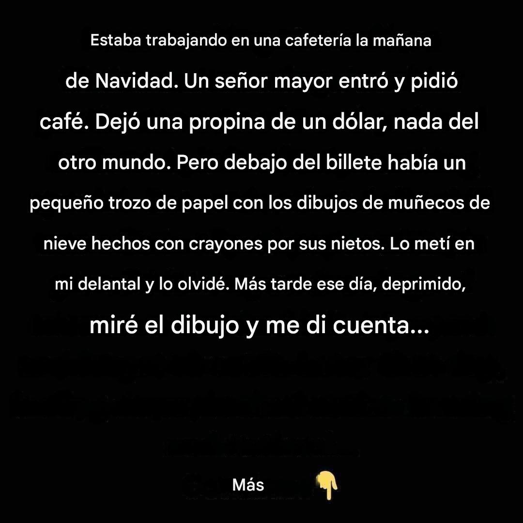 Alrededor de las nueve de la mañana, entró un hombre. Era mayor, su cabello canoso asomaba por debajo de un gorro de lana, y su bufanda parecía haber visto muchos inviernos. Sonrió amablemente y pidió un café solo. Nada del otro mundo. Mientras se lo servía, charló educadamente conmigo; su voz era cálida pero cansada. Al entregarle la taza, metió la mano en el bolsillo de su abrigo y dejó un dólar en el mostrador como propina.