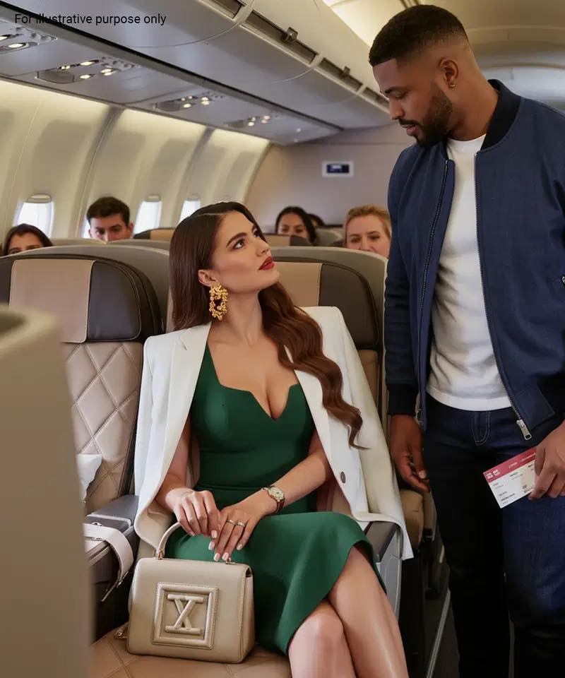 Marcus permanecía de pie, ligeramente encorvado, bajo el estrecho techo de la cabina. Su sencilla sudadera con capucha y sus vaqueros desgastados gritaban "clase turista" a cualquiera que lo mirara demasiado rápido. Mientras tanto, su brazalete de diamantes brillaba bajo la suave y selecta luz de primera clase mientras ella se removía cómodamente en el asiento de cuero que aún conservaba su calor.